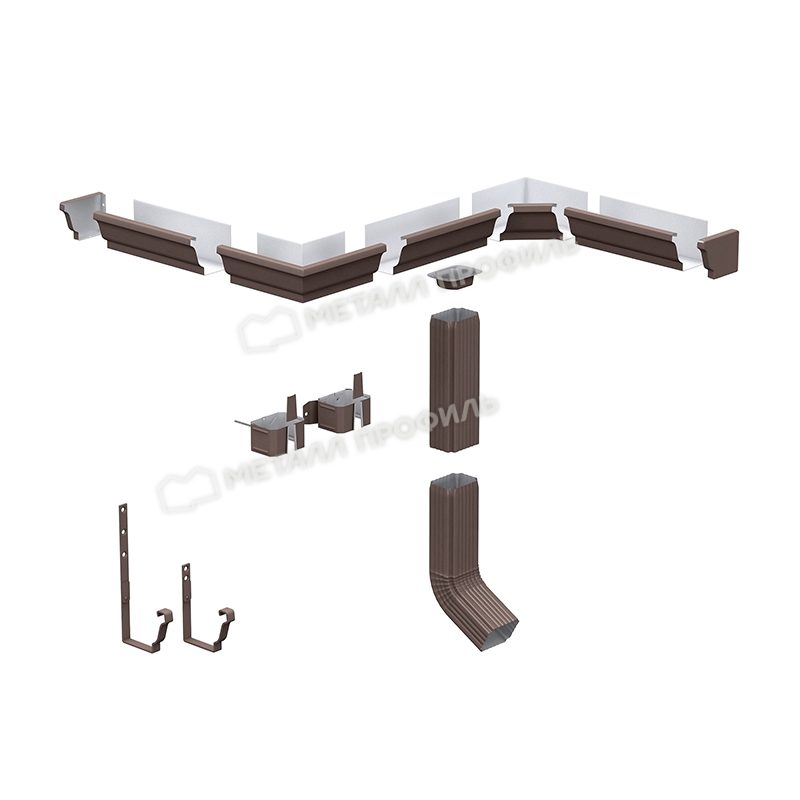 Водосточная система прямоугольного сечения из оцинкованной стали с двусторонним полимерным покрытием Полиэстер, толщиной 25 мкм.